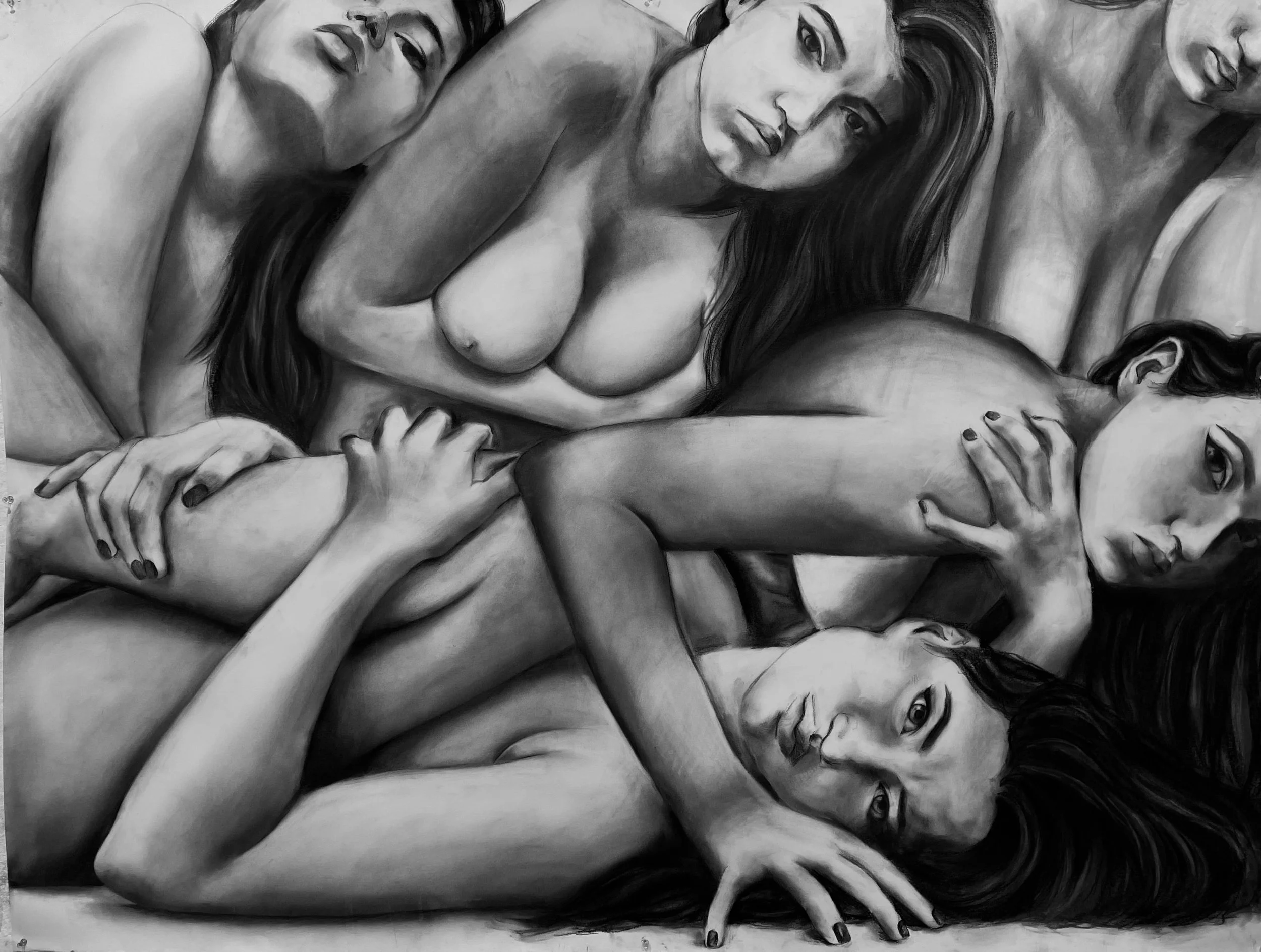 Absorb” 44inx30in, Charcoal on paper, 2024